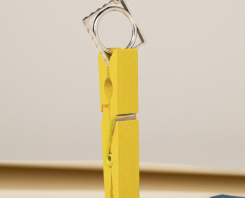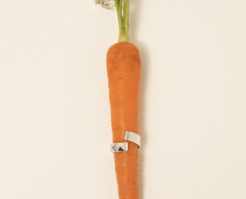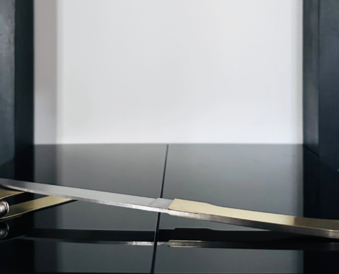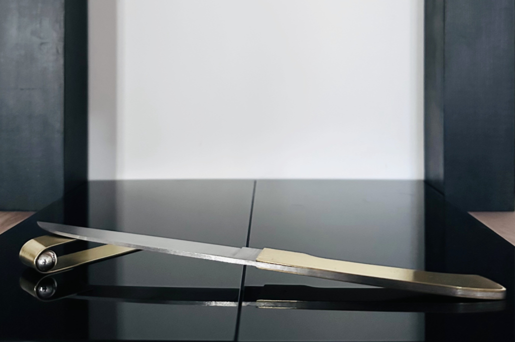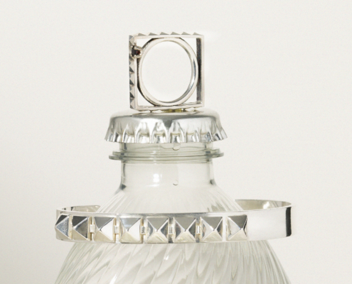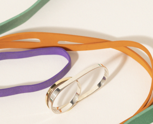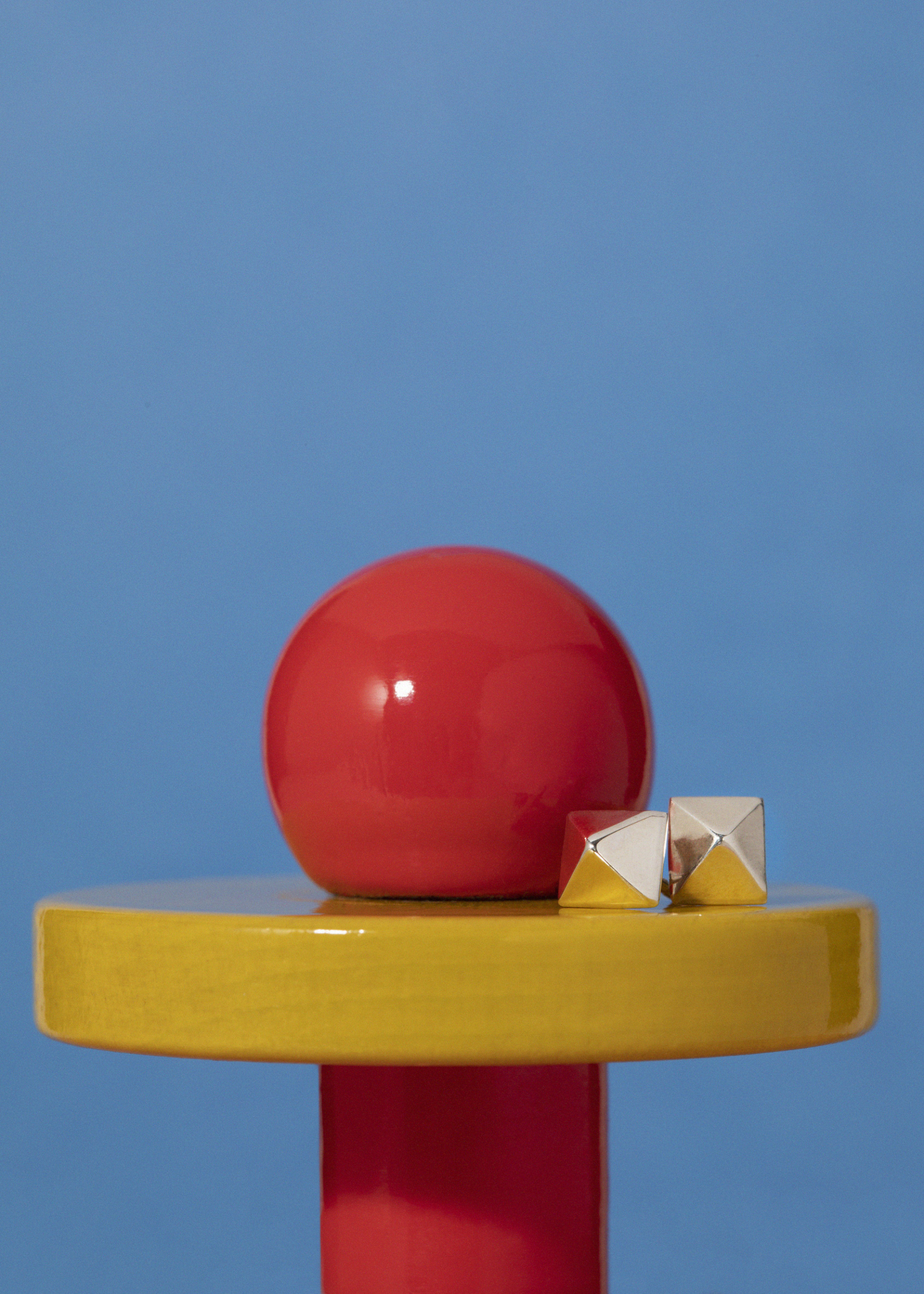 L’art-isanalité d’Adeline Cacheux passe par l’abstraction et le métal. Tout est fait à la main. Dans son atelier parisien, elle chauffe, martèle, tord, vrille, lamine et lime de banals éléments manufacturés : plaques, chaînes, tubes… Les façonner, les sublimer pour qu’au fur et à mesure, apparaissent des formes qui s’articulent, s’imbriquent les unes dans les autres, les unes autour des autres. L’écriture est unique. Adeline Cacheux trouve son rythme entre l’or qui brille et l’argent qui irradie. Elle crée des oppositions, des confrontations pour satisfaire un désir d’objets qui peuvent s’additionner et se détourner. Sans fin.