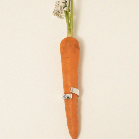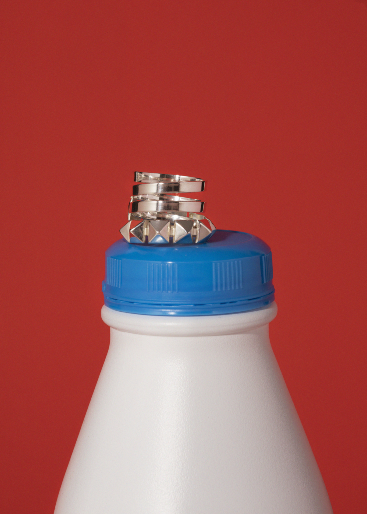Bague spirale et ruban clouté en argent massif.