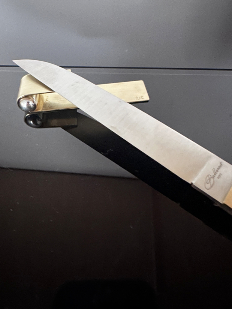 Porte-couteau en laiton massif brossé et argent 925 poli.